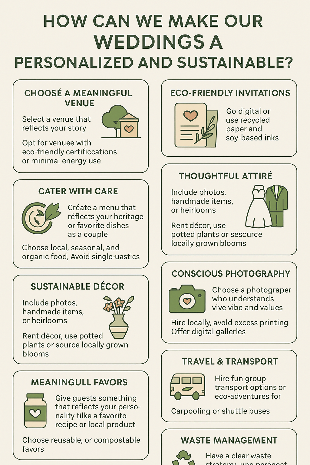On the otherhand a green/sustainable wedding helps our planet . It cuts trash and waste . Choose things good for Earth . Buy local, eco-friendly items . A green wedding loves Earth . Celebrate love and be kind .